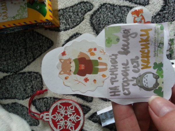 С подарком угадано на 100%. Кулончик с котиком и ещё один с символикой Игры Престолов,маленький Дарт Вейдер(я фанат и того и другого),елочные игрушки и конечно сладости. Всё очень красиво упаковано,к каждому подарочку милая записка с пожеланиями . Спасибо тебе огромное мой Тайный Санта)