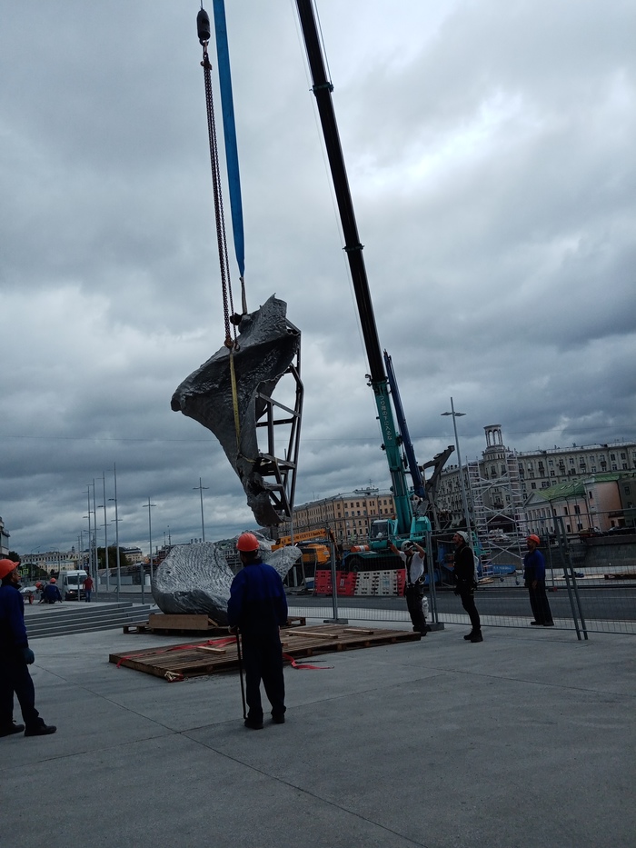 Скульптуру из алюминия готовят к установке на Болотной набережной в центре Москвы осенью 2021 года. Последний раз конструкцию выставляли на площади Синьории во Флоренции в 2017 году( там оно не прижилось), и теперь она украсит территорию бывшей ГЭС № 2.
