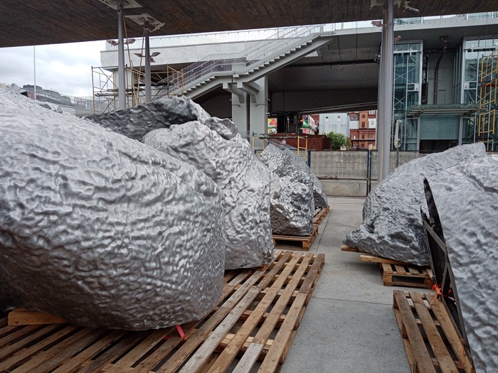 У 12-метровой скульптуры есть название — «Большая глина № 4». Ее создателем стал швейцарский скульптор Урс Фишер. Само произведение искусства представляет собой нечто вроде комков смятой в руках глины, наложенных друг на друга. На самом деле так и есть: в основу легла увеличенная в 50 раз копия комка глины, смятого художником в руках. Конструкция символизирует саму суть творчества, в процессе которого автор придает новые свойства как материи, так и миру вокруг.