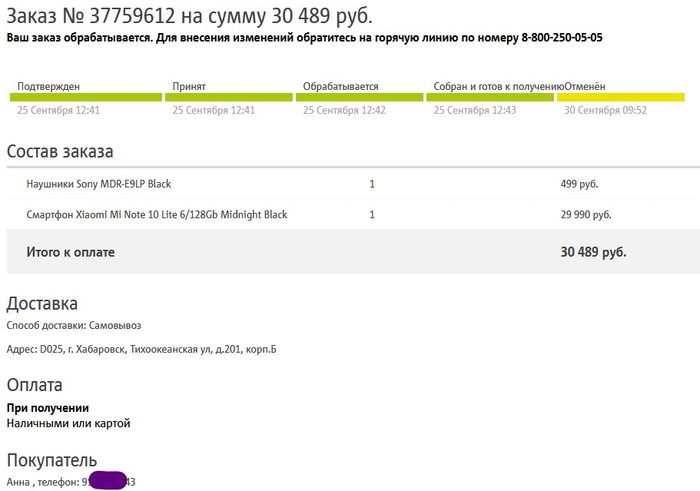 Естественно, ничего не произошло. Звоню сам после 12 дня Москвы, обрисовываю ситуацию. Оператор говорит, что действительно нет такого цвета в этом магазине, как, впрочем, и какого-то другого. Но есть черный цвет в другом. Соглашаюсь, с условием, что цена не поменяется. Оператор уверяет меня, что, мол, да, цену вам меняю прям вот сейчас. Единственное, что оплата уже будет налом или картой. Да фиг с ним, думаю, пусть так. Оператор говорит, что все сделано и сейчас придет смс.