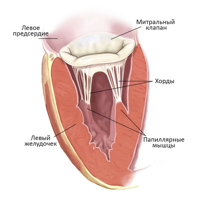 Схематично строение митрального клапана видно на рисунке ниже.