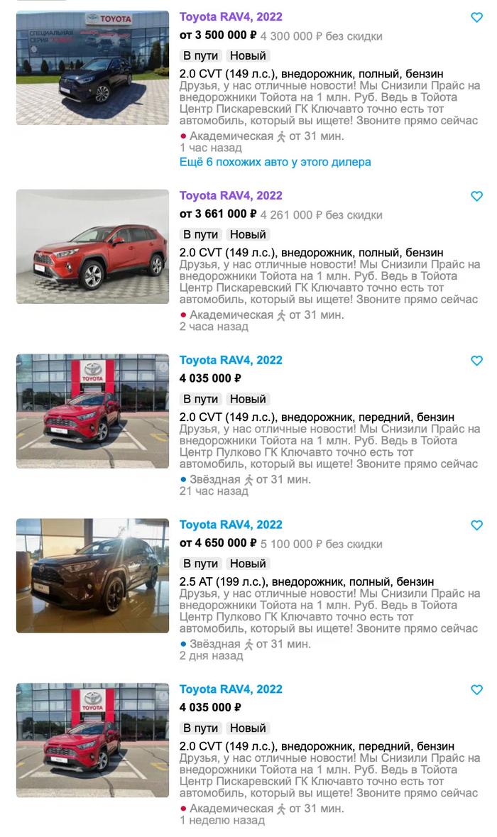 Новые внедорожники Toyota RAV4 доступны на сайтах объявлений. У дилеров и производителей их уже не найти. Еще год назад такие автомобили стоили на 1 млн. рублей дешевле. Проверим, что же там есть в Сербии:
