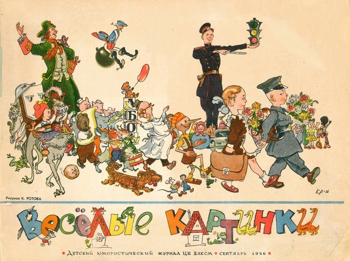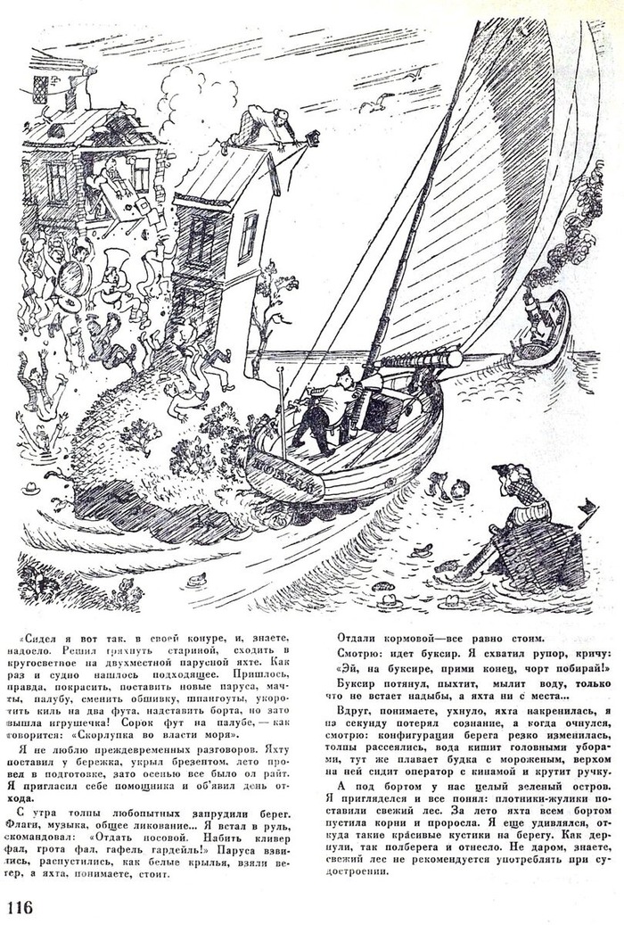 Более того - ротовские иллюстрации к Врунгелю оказались настолько хороши (я их вообще считаю вершиной творчества художника), что Ивантер принял решение публиковать повесть в режиме "почти что комикса" - две трети страницы журнала занимал рисунок Ротова, оставшуюся треть - текст Некрасова. Вот так примерно: