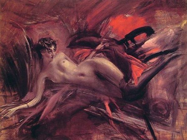 Так или иначе, но донжуанский список Габриеле д’Аннунцио был невероятно огромен, и содержал самые невероятные победы. В нем, например, значились графиня Луиза Казати - итальянская аристократка, роковая красавица и покровительница изящных искусств, оставшаяся в истории на множестве полотен, но в данном контексте больше всего подходит картина Джованни Болдини "Лежащая обнаженная".