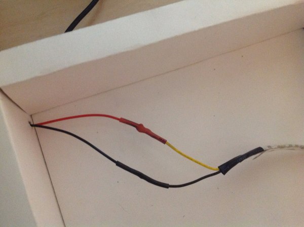 Шаг 4. Устанавливаем разъем и паяем. (Питать от кроны я совсем не хотел) Ножом по дереву (столярным) проделал круглое отверстие размера такого, что бы узкой своей частью "папа" туго пролезал туда. Зафиксирую позже клеевым пистолетом. Провода внутрь продел с помощью нити и иголки.