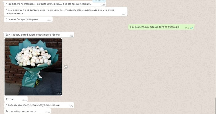 Пишу в поддержку, мол так и так, прошла ночь и ваш букет завял, такого быть не должно, на что мне отвечают: