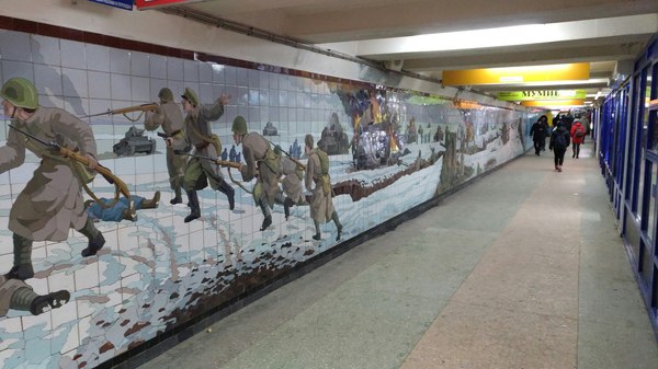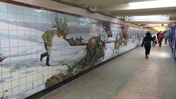 Так, переход через проспект Шолохова тоже посвящен Великой Отечественной. К сожалению, картины в нем - лишь фотопринт на плитке.