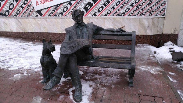 На подъеме от Привокзальной площади нас встречает здание, наверное, крупнейшей газеты города "Вечерний Ростов". Само по себе здание не представляет из себя ничего интересного. Поэтому я лучше покажу вам памятник, от которого на мой взгляд веет уютом и теплом даже в пасмурный день.