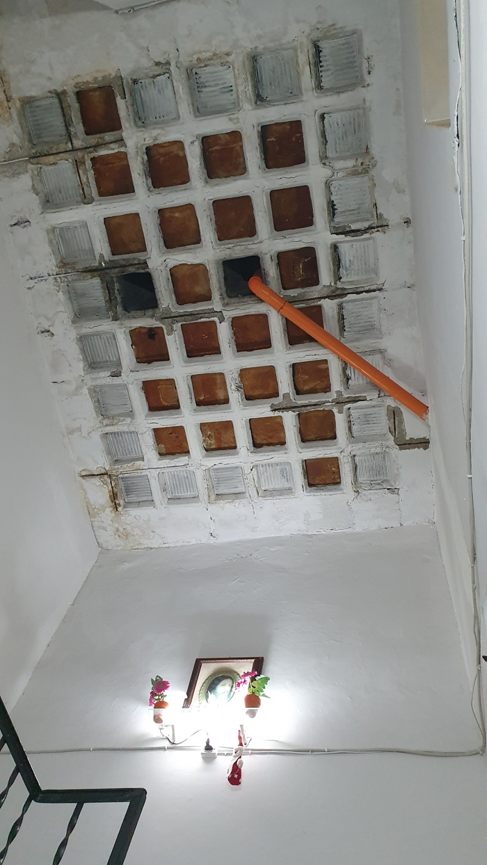 И отдельная тема для настоящих сантехников. Мы жили в старом городе в типичном древнем доме, в котором не было отопления (кондиционер для обогрева) и, по-видимому, канализации тоже изначально или не было или она как-то по другому была устроена, но сейчас трубы провели снаружи здания. Вот так.