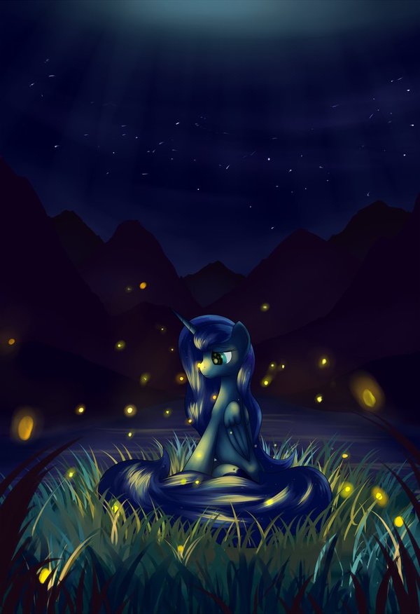 Найт вздрогнул от неожиданности, поднял голову и увидел очень красивую единорожку на две головы ниже его ростом, голубого окраса шёрстки, невероятно длинные такого же нежно голубого цвета хвост и грива, кютимарка в виде сердечка тёмно-синего цвета. Стройная фигурка. Ей было невозможно не залюбоваться.