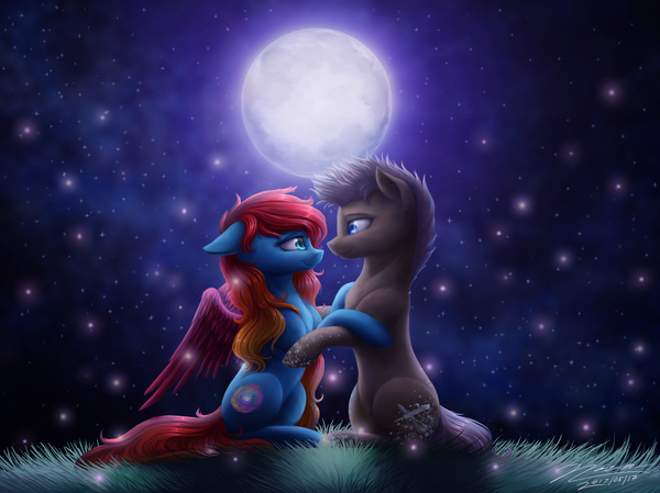 Вечер, дела по дому сделаны и я предложил милой Флаттершай прогуляться, согласилась без раздумий, тем более с кем оставить младших жеребят вопроса не было, старшего они слушались беспрекословно как меня.