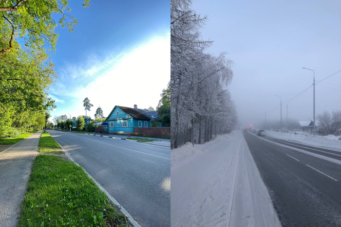 Друг прислал фотографию из города Луга (Ленинградская область), которая очень похожа на улицу Республики в Салехарде (Ямало-Ненецкий АО). Понимаю, что города делали типовыми, но тут удивило приятное совпадение. Моя зимняя фотография Салехарда и очень похожая летняя с Луги. А можно действительно подумать, что место одно и тоже, только в разные времена года.