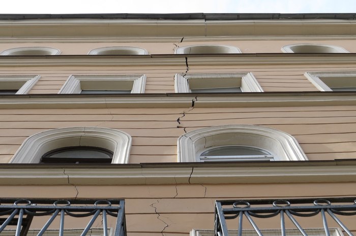 Дом пошел сквозными трещинами, и компания Кравт Инвест начала скупать квартиры у напуганных жильцов. Как проговорился их сотрудник, хотят выкупить все и открыть здесь еще один отель.