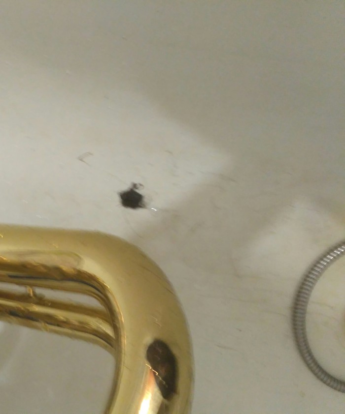 Короче, решил я починить маленькую тубу "Ямаху". Она протекала из настроечного крона (где слив конденсата) и пропускала воздух. Приволок домой, пытался достать крон, который никогда не вытаскивался, так как какой-то умник его, видимо, погнул.