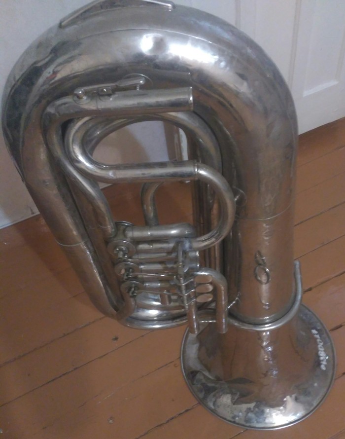Туба побита жизнью и потрепана изрядно и черт его знает сколько лет лежала в закромах и что с ней вообще было , увы первоначальной фотокарточки нет где она вся в пыли и паутине , ибо багажник не хотелось марать.