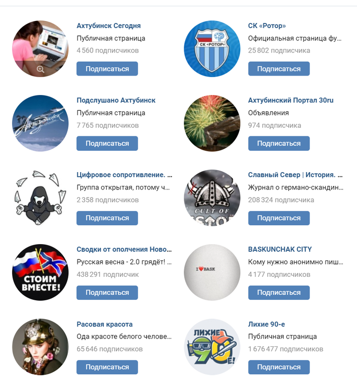 В подписках ситуация ещё страннее, группа "Расовая красота" и "Славный Север":