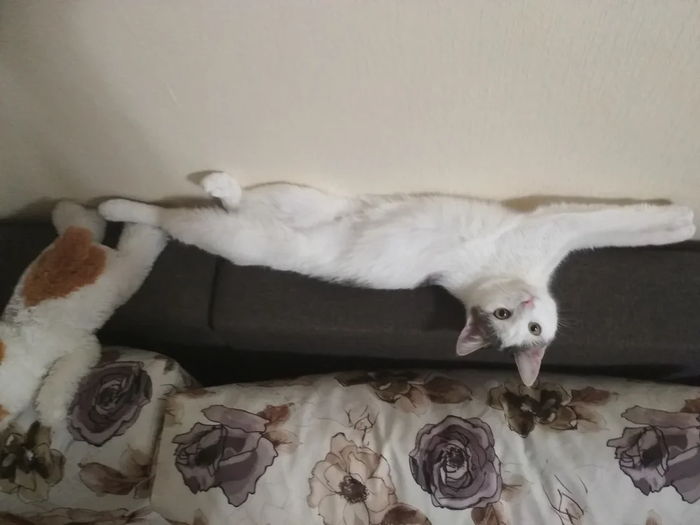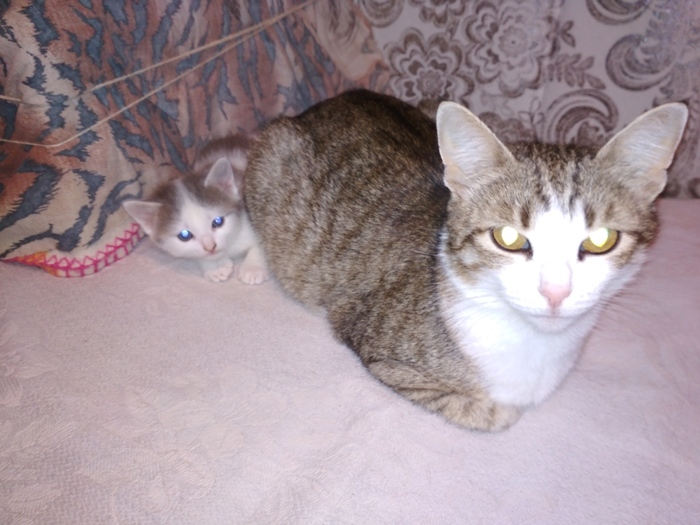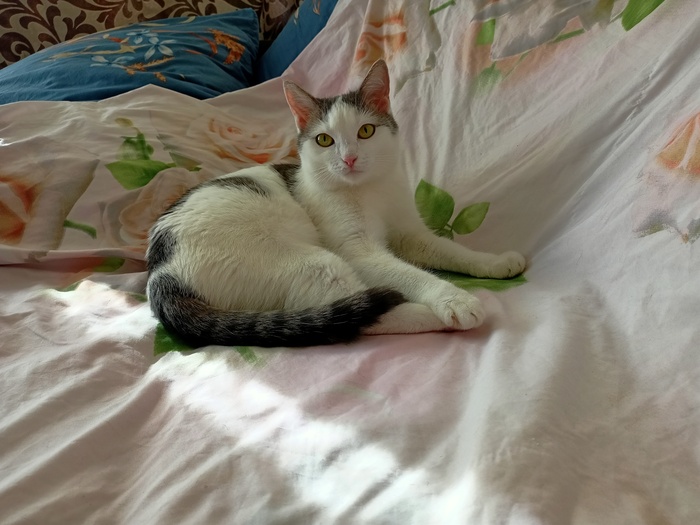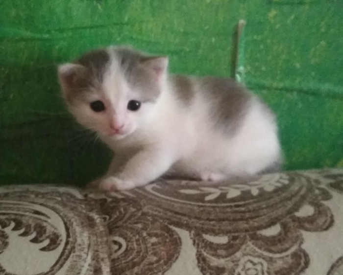 Моя любимая кошка, зовут Лапа/Лапуся. Очень ласковая, не отходит от своих хозяев, требует к себе постоянного внимания и игр. Не любит сидеть на руках (исключение: только, если сама пришла ласкаться). Вечером ложится под бок любимому человеку, мурлычит и перебирает лапками, "делая массаж". Утром выполняет работу будильника, тыча мордочкой в лицо. Всегда встречает с работы. Летом вылавливает и съедает всех мух в квартире. Однажды хотела поймать шершня, но была спасена. Будучи еще котенком отрастила себе большие уши, а уже потом сама начала расти.