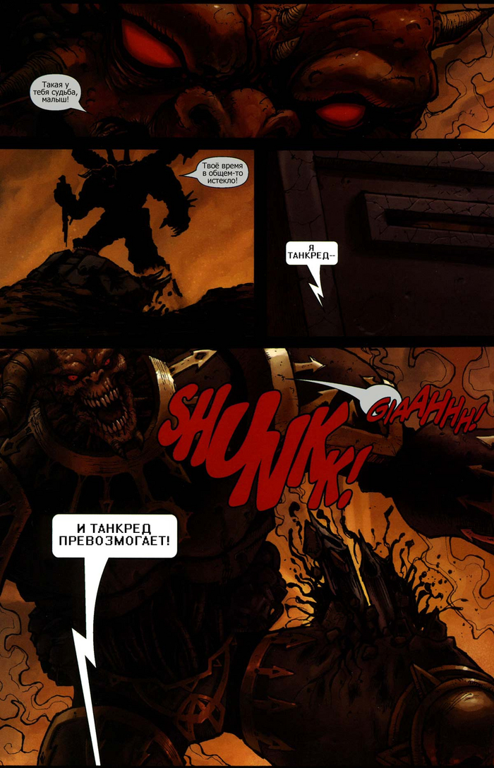 Короче, дело к ночи, цель на позиции, надо работать. Там же рядом тусуется демон, которому уже отдают кровь. Выбор сделали, миссия - убить Хоруса, остальное похуй. Келл целится, стреляет, бам, хедшот, лоха на респ можно двигать по домам, жаль только это был не сам Хорус, а подменявший его на работе легионер Люк Седире. Уууупс...