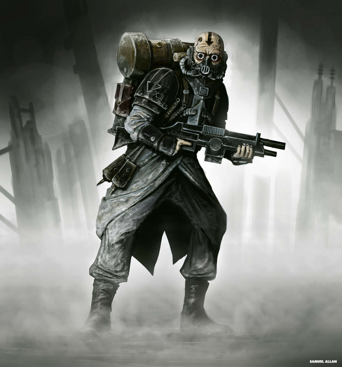 Естессно, одеты и экипированы они тоже по последнему слову техники. Комбинированные пистолеты с несколькими режимами стрельбы, перчатка режущая броню как бумагу, отравленная нейротоксином, от эффективности которого тираниды исходят слюнями и хотят такой же. До кучи гранаты, бомбы, и ещё всякого, по вкусу.