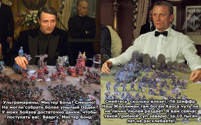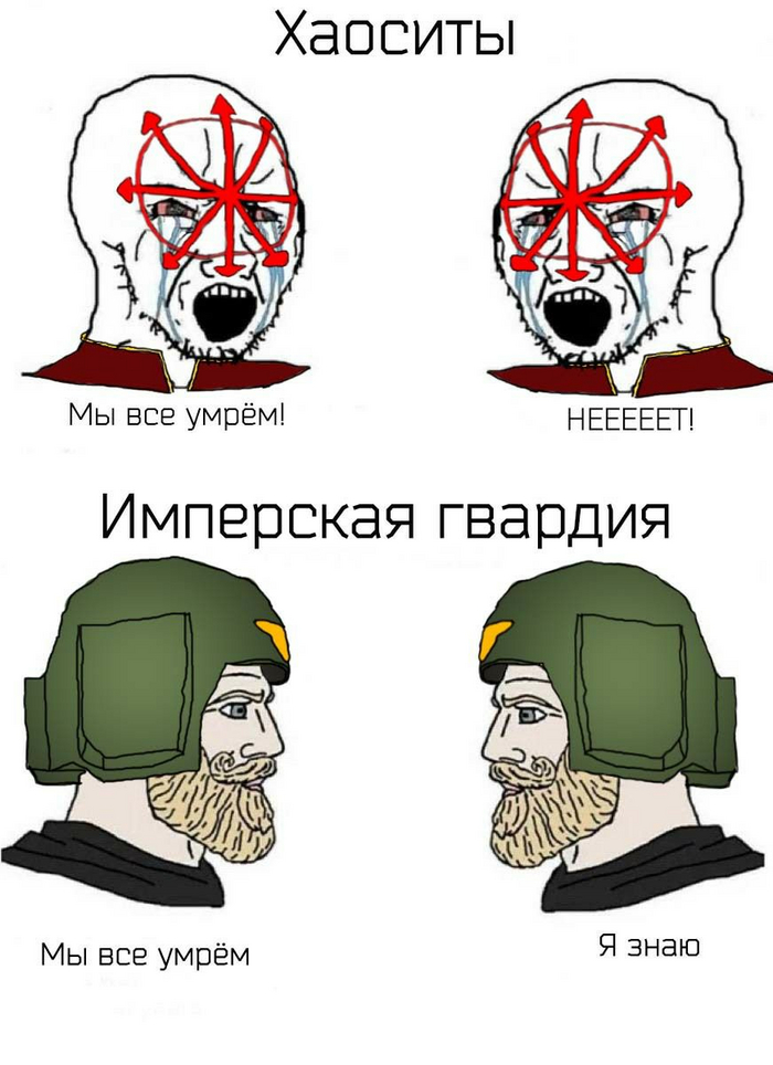 Это и один из постулатов их силы. В контексте выживания сильнейших наверх пробиваются только самые хитрые/сильные орки фанаты воображаемых друзей. И сверху им ещё накидывают приколов их боги. А вот в Имперской Гвардии и Космофлоте имеют место и династии и местничество и взятки и лизоблюдство. Вообще, вечная борьба хаоса и порядка напоминает масштабную модель борьбы правосудия и организованной преступности в любом городе-улье. У преступников нет чёткого местоположения, и у них чаще харизматического типа лидеры, а полиция и армия лучше вооружены и организованы. Такая вот типа философия за 300, ладно, возвращаясь к нашим упырям - хаоситам: