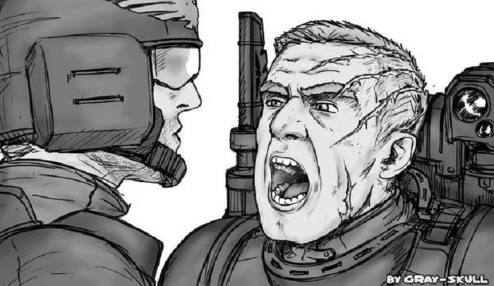 - Беды с башкой. А вы посидите ка в Оке Ужаса пару тысяч лет, посмотрим как у вас фляга засвистит. Паранойя, фанатизм, мания преследования и садизм - стартер пак менталки космодесантника хаоса