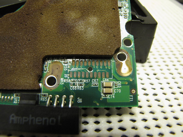 Производители же, столкнувшись с данной проблемой сделали выводы, и последующие диски не имели данной проблемы. "Погоди, но ведь на первом твоём фото четко видно сильнейшее окисление контактов, диск не может с этим работать!!!" скажут читатели и будут неправы. Все дело в том, что контакты на гермоблоке сделаны в виде иголок, которые царапают контактные площадки, так как они чуть большей длины чем нужно, и даже сильно окисленные контакты процарапают до металла.. Смотрите на фото контактов платы, что была на первой фотографии: