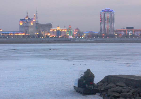 Стрелками помечены пограничники-наши и китайские. Ближе это выглядит примерно так (с российской стороны)