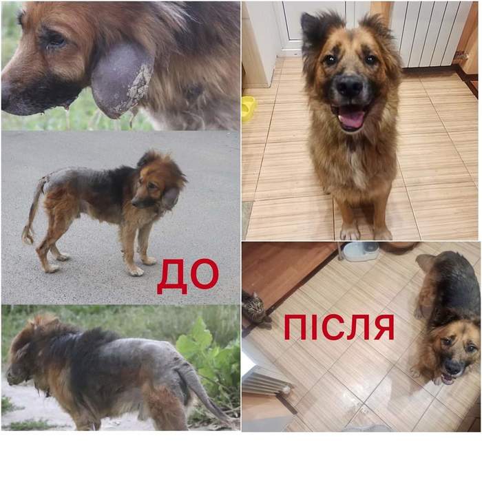 Собака в приюте была несколько месяцев, где его стерилизовали и отрезали ухо, которое представляло из себя огромную гематому - чесал уши из-за нелеченного отита. Красивая легенда гласит, что у него умерла хозяйка и он жил в заброшенном доме. Единственно известно лишь то, что он год бегал от волонтеров (умный, хитрый и подозрительный). По повадкам он был явно цепной собакой - знал только миску, ошейник и будку. Вы пробовали выколупать испуганную овчарку из маленькой тумбочки?
