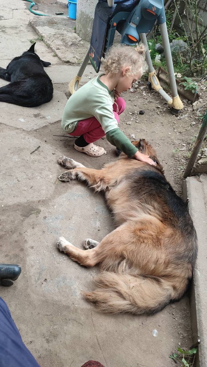 Я склоняюсь к версии, что сидел на цепи, постарел, облез, съел зубы о сетку-рабицу и был вывезен любящими хозяевами. В версию побега в его случае я не верю - его невозможно потерять, он никогда не отбегает далеко, всегда возвращается домой и очень привязан к человеку.