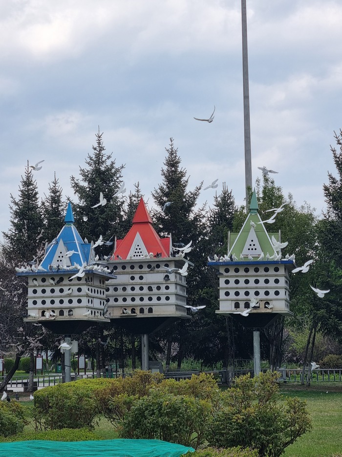 Можно покормить голубей, живущих в оригинальных "дворцах":