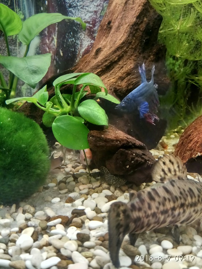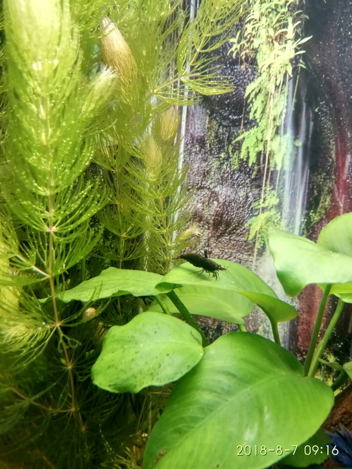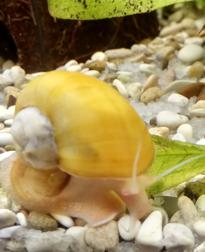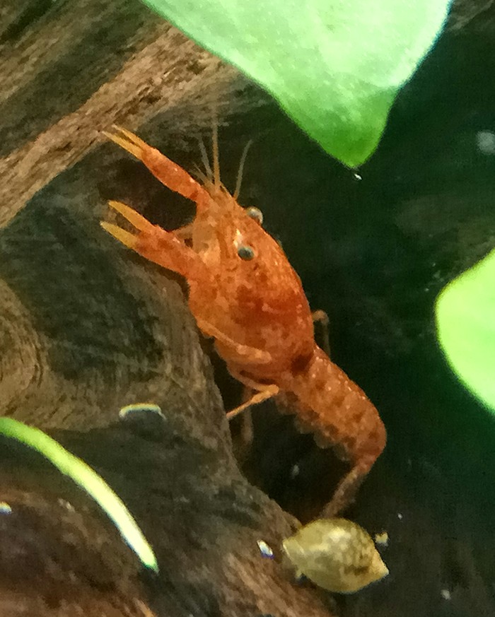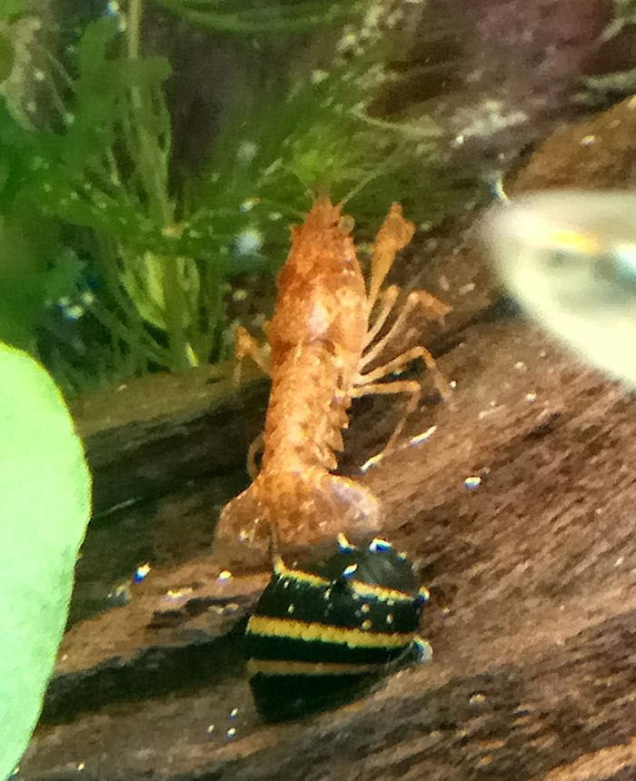 Ампулярия и 2 карликовых мексиканских рачка. В магазине не заметили - у самца только одна клешня. Видать потерял в боях.