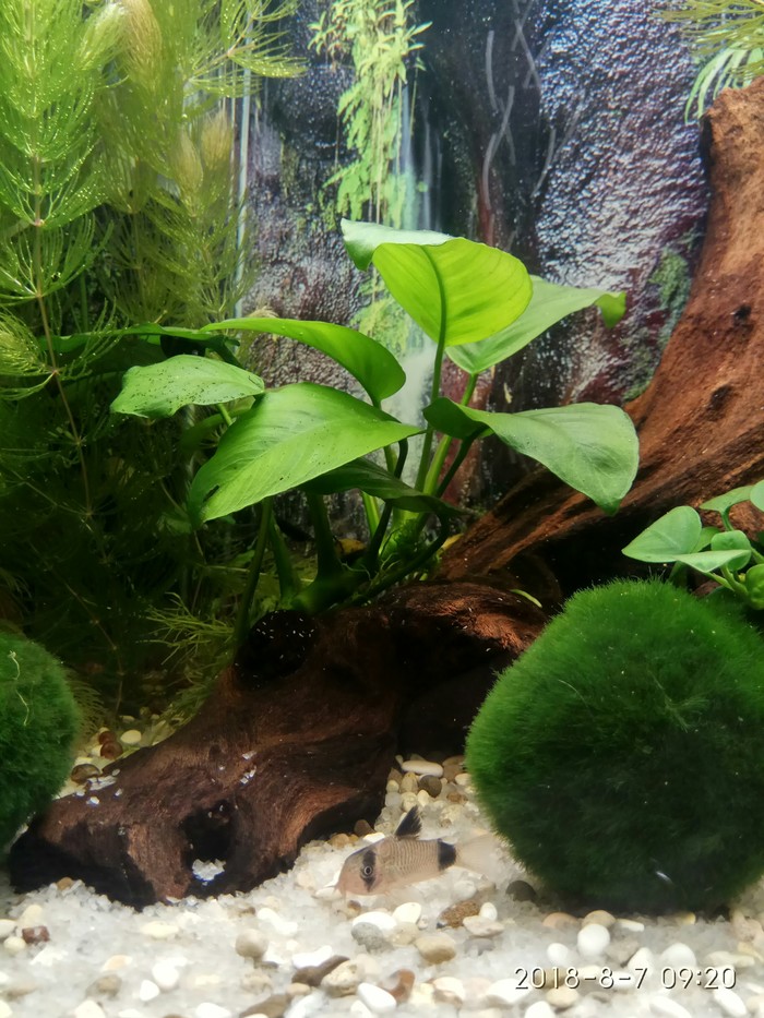 Сегодня сменил задний фон (старый в пред. постах) . Уезжали в отпуск на 12 дней - оставляли автокормушку и таймер для освещения + перед отъездом 50% замены. Все обитатели живы и здоровы, только я переживал что вдруг лопнет стекло и 70 литров соседям зальёт или коротнет таймер ... Тьфу-тьфу обошлось. растюхами все обросло, пришлось прорядить. После приезда установил на освещение 3 люминесцентные лампы по 18 Вт