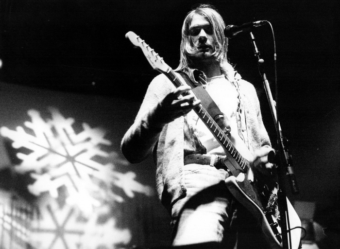 Обновленная по качеству из ранее доступных в Сети фотография Курта Кобэйна, сделанная во время выступления NIRVANA в спорткомплексе "Patinoires du Littoral", город Невшатель, Швейцария, 19 февраля 1994 года.