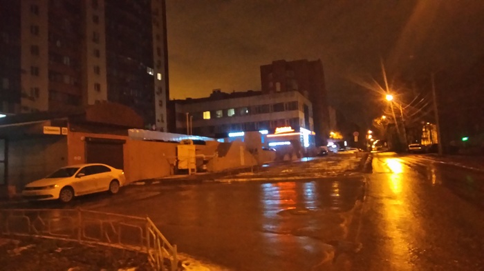 С другой стороны (теплое и сухое место рядом с белой машиной - след от моей)