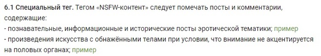Выходит любая фотография с обнаженным телом без акцента внимания на половых органах попадает под пункт правил 6.1 и может свободно поститься под тегом NSFW.