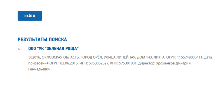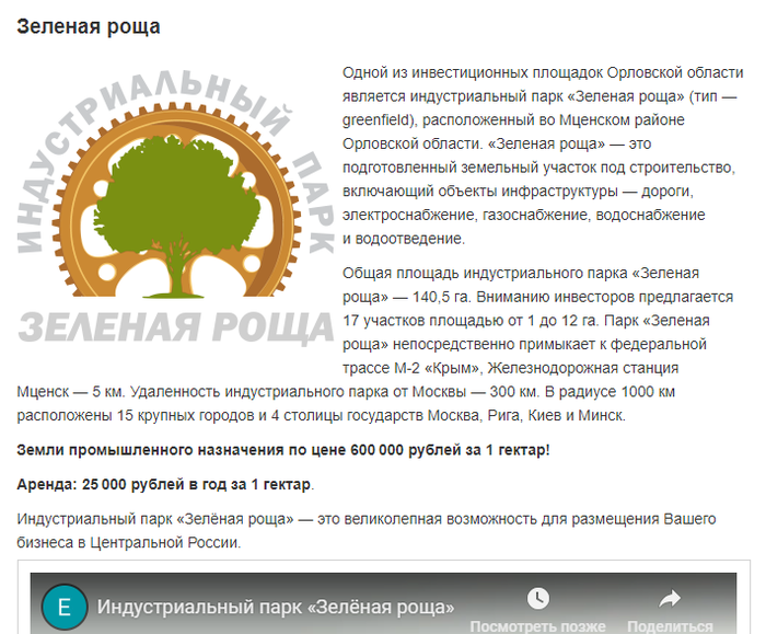 На этом можно было-бы остановиться, но мы копнем глубже. Итак, сайт АО "Корпорация развития Орловской области". На ней видна информация по индустриальному парку "Зеленая роща", но нет никакой информации об УК, о которой идет речь:
