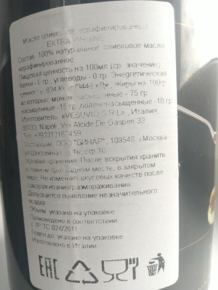Wildberries торгует таким же палевом !! Vesuvio Oro , зеленая не густеющая в холодильнике бурда ... По моей ссылке товара нет в наличии, но несложный поиск дает кучу вариантов приобретения и литра, и 5 л...