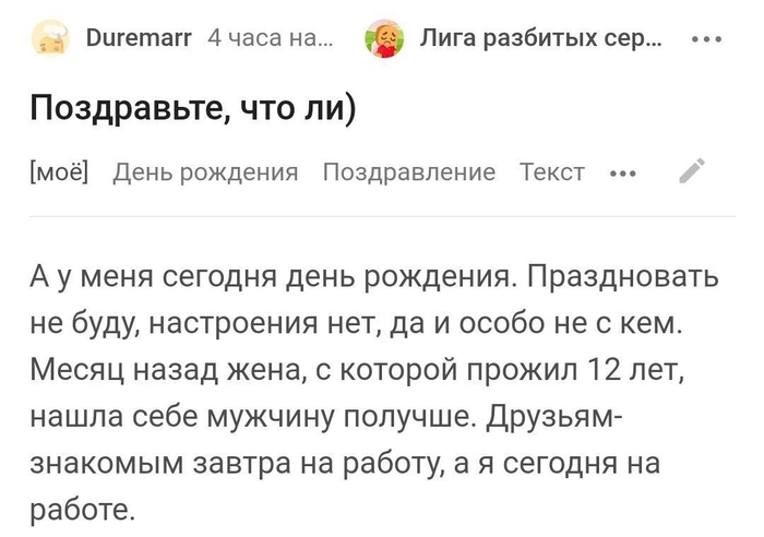 P.S. - теги «поздравление» и «Лига дня рождения», как и вся Лига Дня Рождения, доступны для игнора )