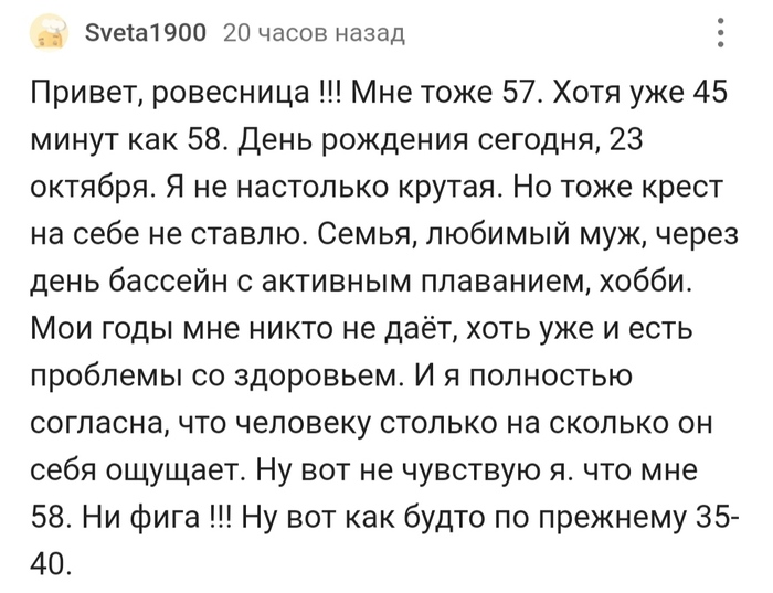 Желаю вам всем независимо от возраста и окружающих оставаться юными и молодыми и душой и телом! Быть здоровыми, жизнерадостными, бодрыми, красивыми, счастливыми, успешными, самодостаточными и шикарными! Не стойте на месте, двигайтесь вперёд и достигайте высот! Получайте от жизни всё лучшее и приятное :) С днём рождения!