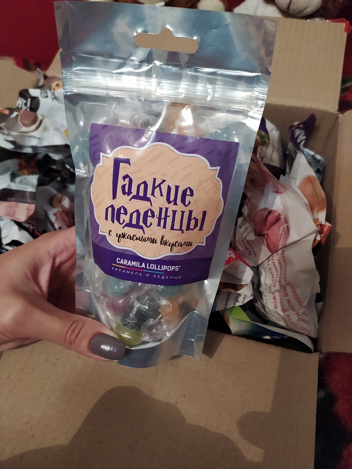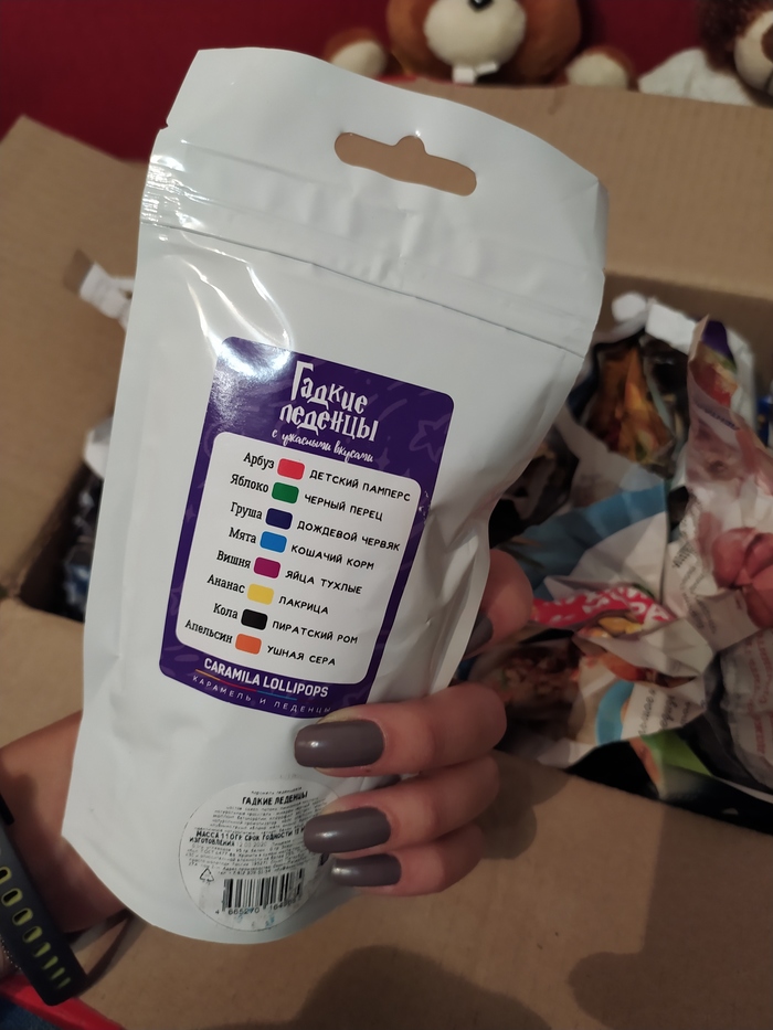 Муж ни в какую не хочет пробовать, боится, что попадётся со вкусом подгузника или червя ) А я пока что уничтожаю конфетки со вкусом «Пиратского рома» )