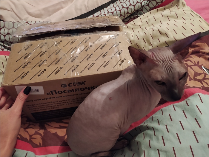 Она уже поняла, что в коробке ничего для неё нет, получила свою взятку вкусняшками и вернулась к своим делам )