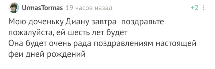 Всем остальным я желаю того же самого! Не переставайте верить в чудеса, и они всегда украсят вашу жизнь и сделают её лучше! Побольше вам лёгкости, беззаботности и радости! Не забывайте вашего внутреннего ребёнка и почаще радуйте и балуйте его! Тогда и во взрослой жизни всё сложится, как надо, и вам всегда будут сопутствовать удача и успех! С днём рождения!
