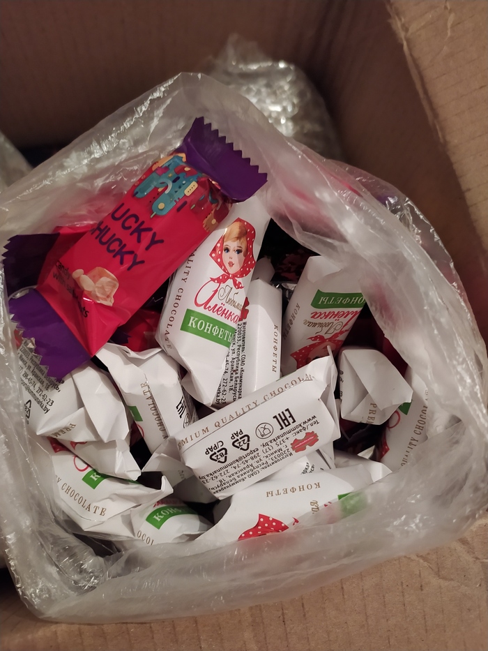 Невероятно много вкуснющих конфет! Это лишь верхушка мешка!