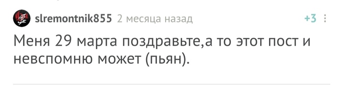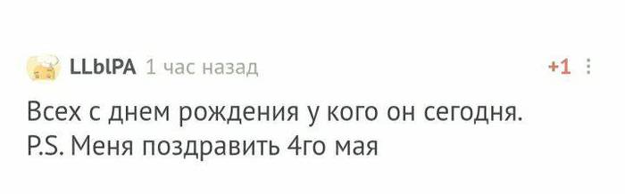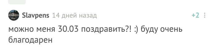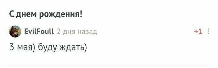 Кстати, сегодня начнем с одного не очень обычного поздравляемого: я не знаю кого поздравляю и не могу сказать от кого ) Но проигнорировать не могу )