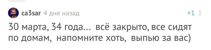 Ну вот и всё, у нас в городе с сегодняшнего вечера введён режим самоизоляции. Сейчас быстренько отпоздравляю пикабушников и уйду в отпуск. Вы там это, в конце апреля напомните мне о существовании цивилизации, @Ninaninja , ладно?