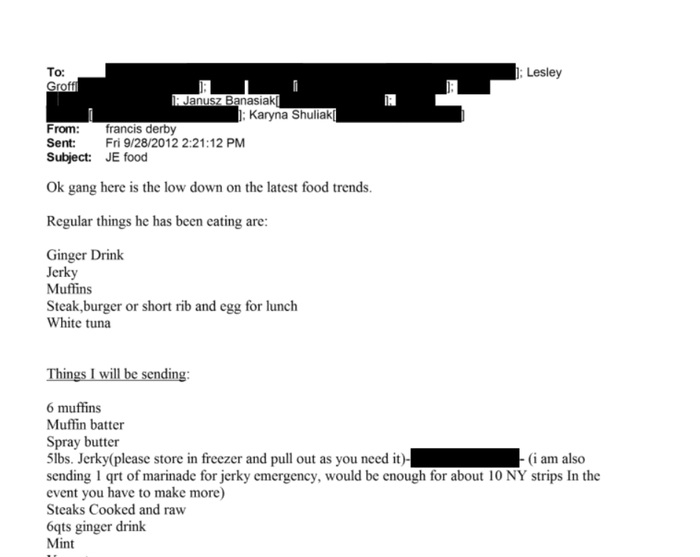 Вот только там говорится о вяленой говядине, которую ПРИВЕДУТ Эпштейну домой, о вяленой говядине, которую нужно отправить на анализы, делятся рецептами вяленой говядины от шеф-повара ресторана под названием «Каннибал» и угорают с того, как это иронично, что шеф-повар готовит в своем ресторане вяленую говядину (типа без кавычек), вяленая говядина у них хранится замороженная и в пакетах, рецепты которыми они делятся не имеют смысла для вялиного и высушенного мяса, получится пересоленная херня, зато они очень похожи на рецепты из сырого мяса и т. д.