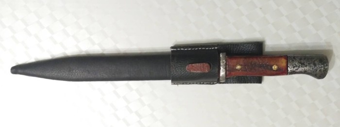 Недолго поискав в интернете, узнал что это немецкий штык нож от карабина k-98. Решил реставрировать сие чудо, а чудо потому что особых боевых действий на теории моего села не велось. Первым делом я обратился к знакомому с просьбой привести металл в более менее пригодное состояние. Очистка велась путем кустарной гальванизации, однако результат меня порадовал