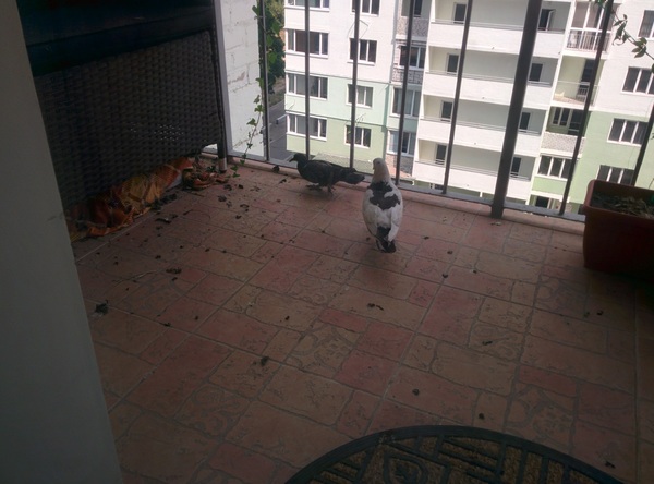 Теперь уже второй год ежедневно гоняем этих товарищей с балкона, они уверены, что квартира принадлежит им, а не нам. Летом ежедневно они вьют гнездо из веток (тупые и упоротыеные, получается день сурка. Вечером ты его выбросил, а на следующий день половина уже снова свита. Прошлым летом стоило нам на 10 часов уйти из дома в гости, как тут же было свито еще одно гнездо и снесено яйцо. В этот момент даже мое доброе сердце не выдержало и я перенес гнездо на общий балкон. Переживали, что птицы его не найдут, но напрасно. Недели через 3 появились птенцы. Общий балкон пришлось в конце помыть, но это было не так страшно, как за год до этого.