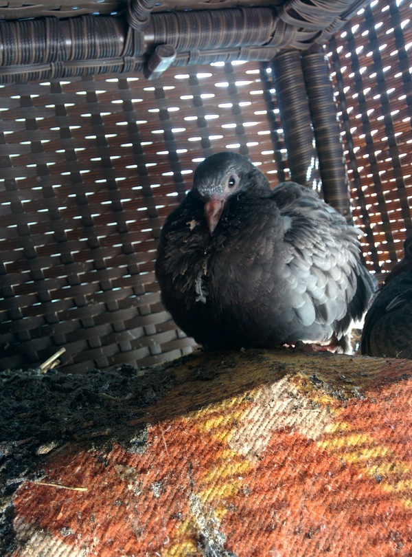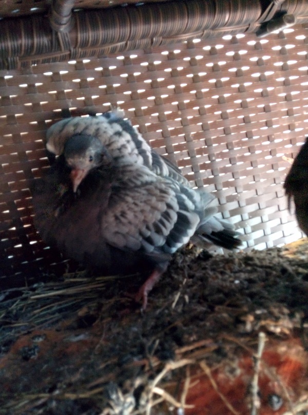 и вот в очередной приход, увидел, что под диванчик, стоящий на балконе несколько раз прилетал голубь. Заглянул и увидел вполне симпатичную картину