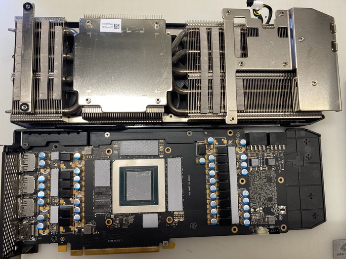 Читатель, который интересуется вопросом спросит - и как же можно поставить сюда память объемом в 48 гб? Ведь тут всего 12 возможных посадочных мест под память. А максимальный объем чипа памяти GDDR6X (только с ними работает чип rtx 4090, сам чип памяти - уникальная разработка Nvidia совместно с компанией Micron) ограничен 2 GB. И объема в 4 GB не существует и не будет существовать (производство gddr6x подходит к своему логическому концу, его заменил новый стандарт памяти GDDR7). А ответ хранится в следующих картинках: